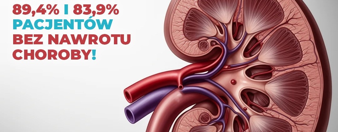W podgrupie chorych z guzami ≤3 cm, bez wcześniejszego rozpoznania raka nerki oraz po skutecznie przeprowadzonym pierwszym zabiegu, odsetek pacjentów, u których nie nastąpił nawrót choroby osiągnął 89,4%.